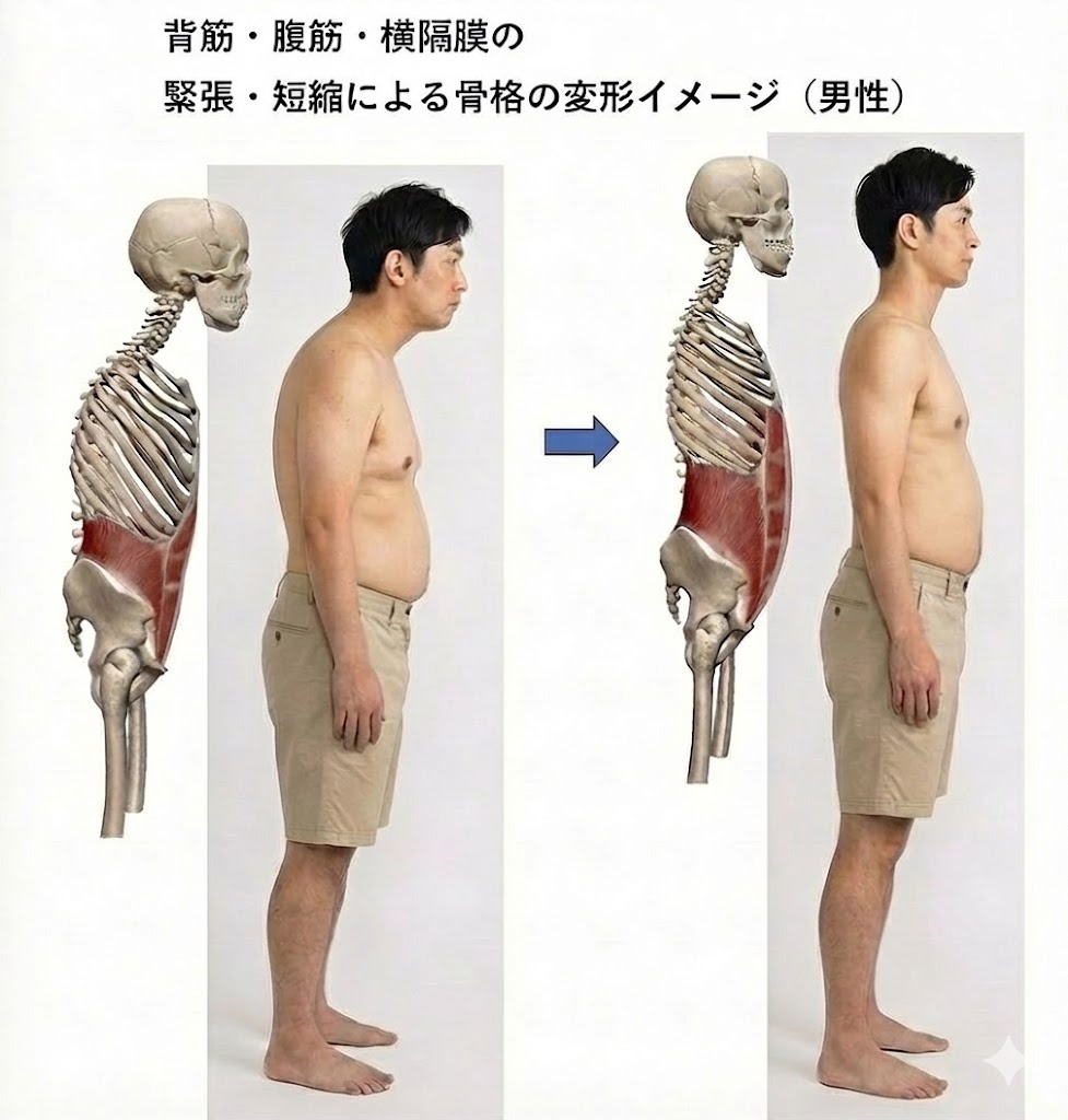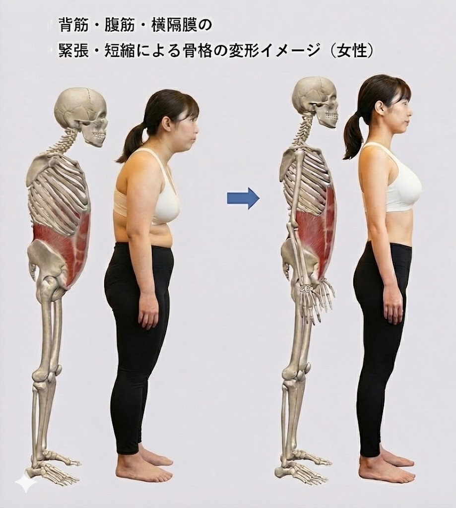 このあたりの筋肉・関節を大きく変えれば、1度の施術でもかなりの体形の変化を生み出せる可能性が高い。